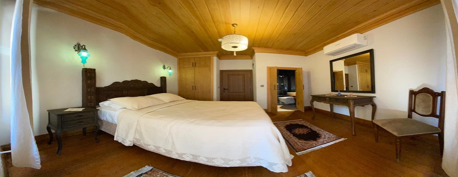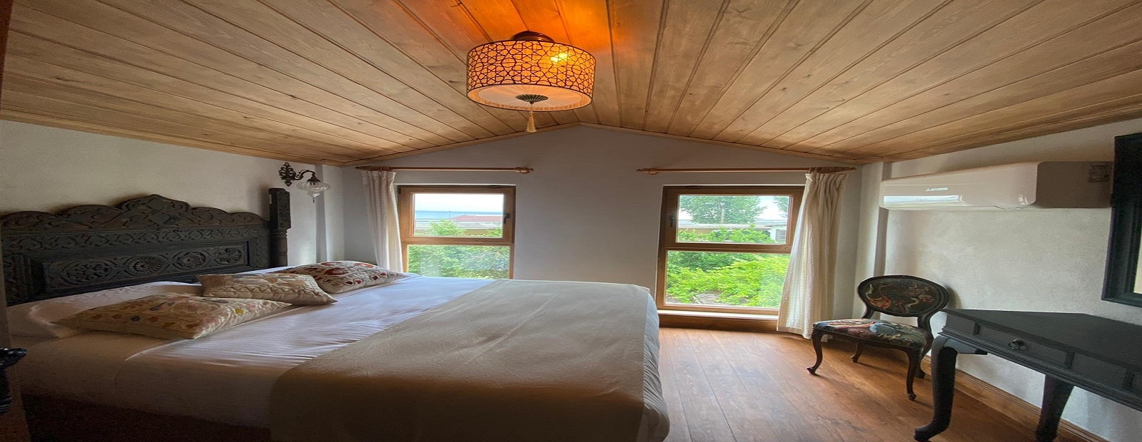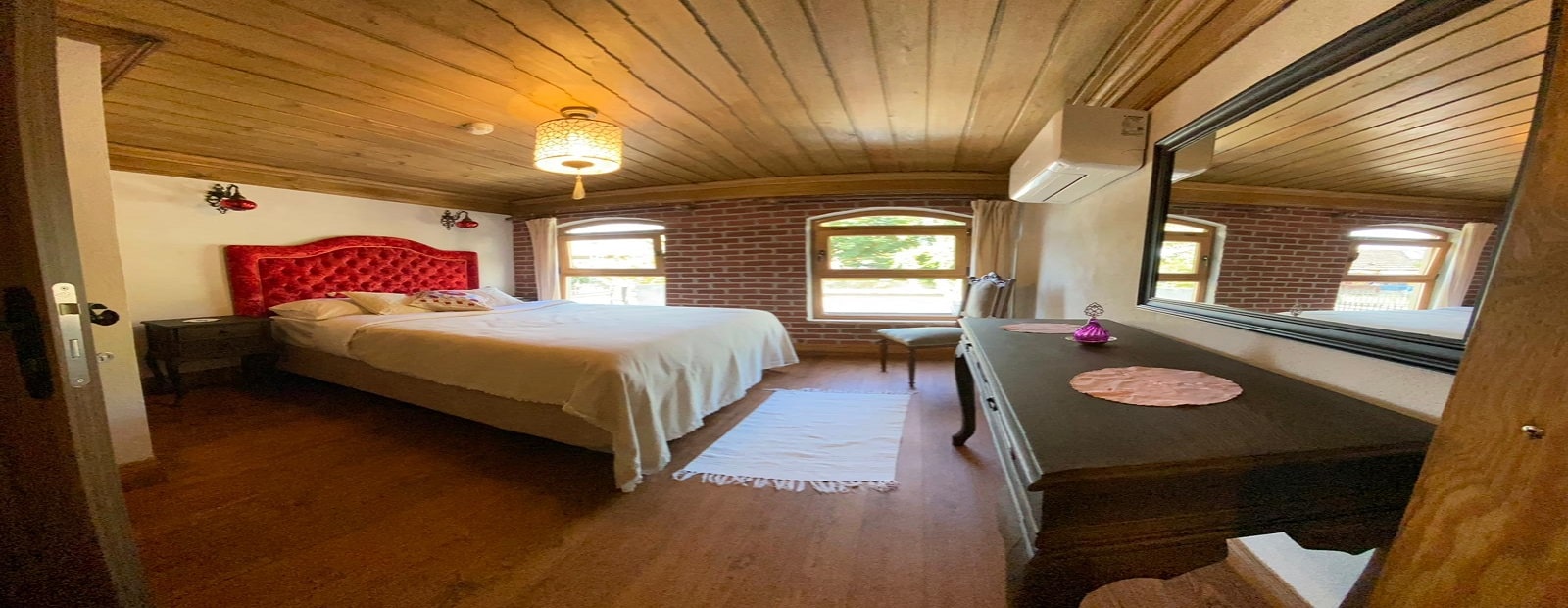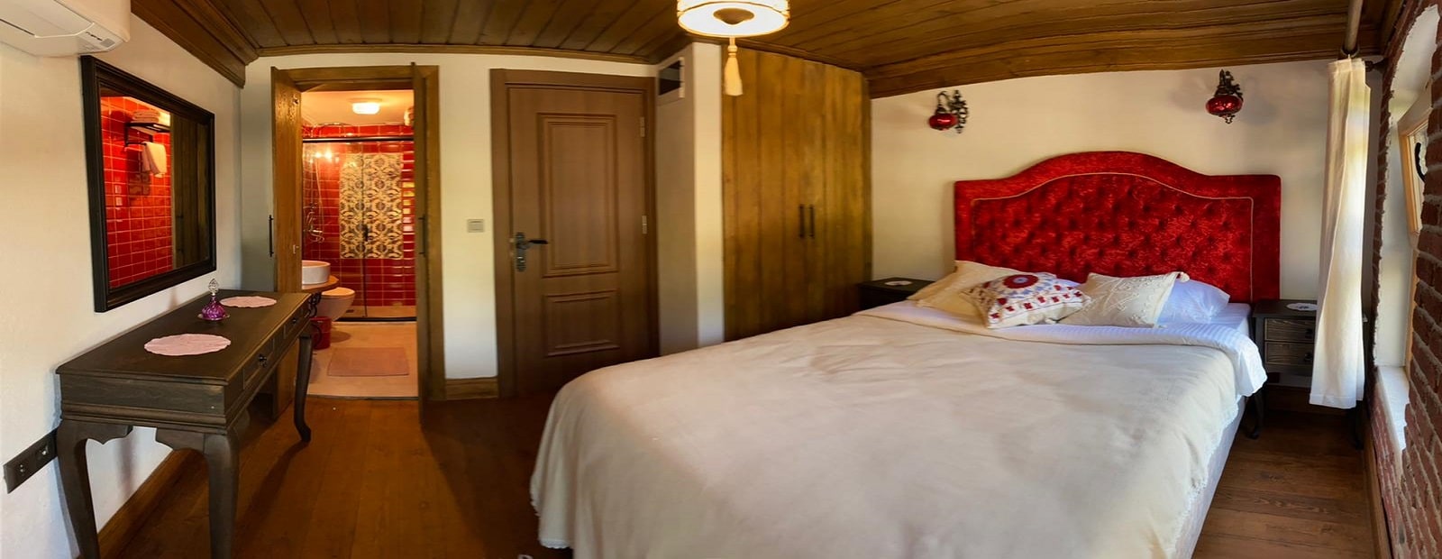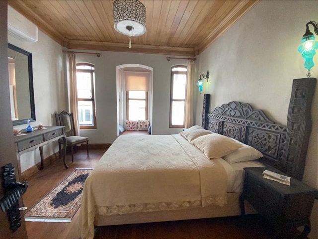 The wooden masonry building with a bay window with 4 separate entrances in the 1890s was prepared as a floor built with fire bricks. As a result of remaining intact and undamaged until today, we had the chance to have the buildings built for the palace in 2016. The necessary permits were obtained, relay and restitution were made, and the floor and ceiling carcasses of the original structure were renewed with the same application. The partition was renewed by making the same original patterns from pine trees of the floors, and the original patterns of the rooms were repeated inside the building. The plaster inside the building, on the other hand, is used in the construction of Hagia Sophia and Süleymaniye, sour lime brick salt, towed cream derekum is mixed in certain measures and kept for 24 hours and the application becomes possible. Features of this type of mortars with very high resistance to sea water, cement-based mortar and plaster of which are widely used in the cities of the sea coast, and its durability and flexibility cannot be ignored.